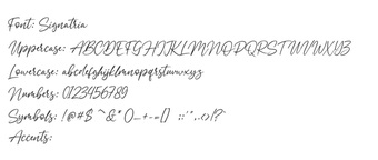 Signatriaの独特な特徴、微妙な不規則性と柔らかな曲線は、その親しみやすい個性を高めつつ、可読性を維持します。このフォントファミリーは、特にブティックビジネスやファッションブランドに適しており、ロゴ、パッケージ、クリエイティブなタイトルに洗練された個人的なタッチを提供します。その芸術的なひねりとエレガントなデザインにより、Signatriaは手作りの感触を重視するプロジェクトにおいて探求を促します。